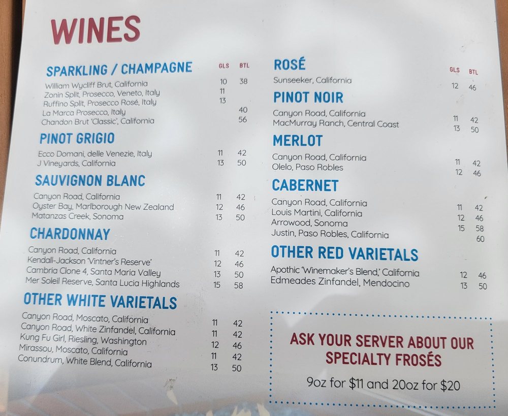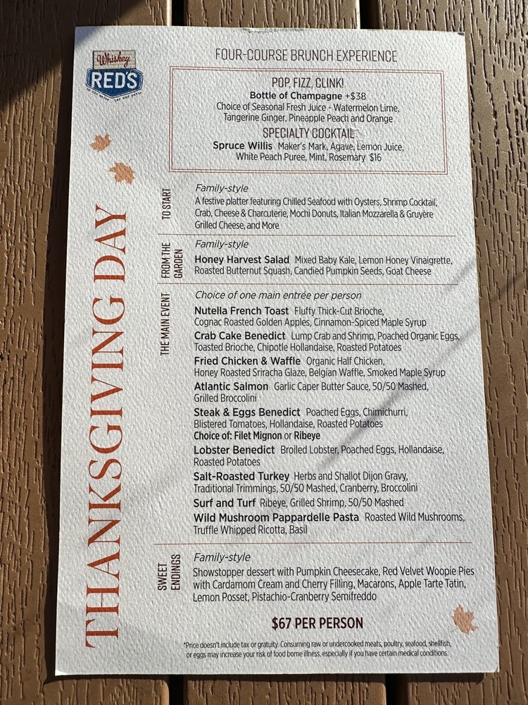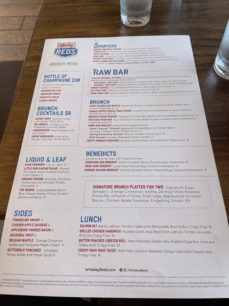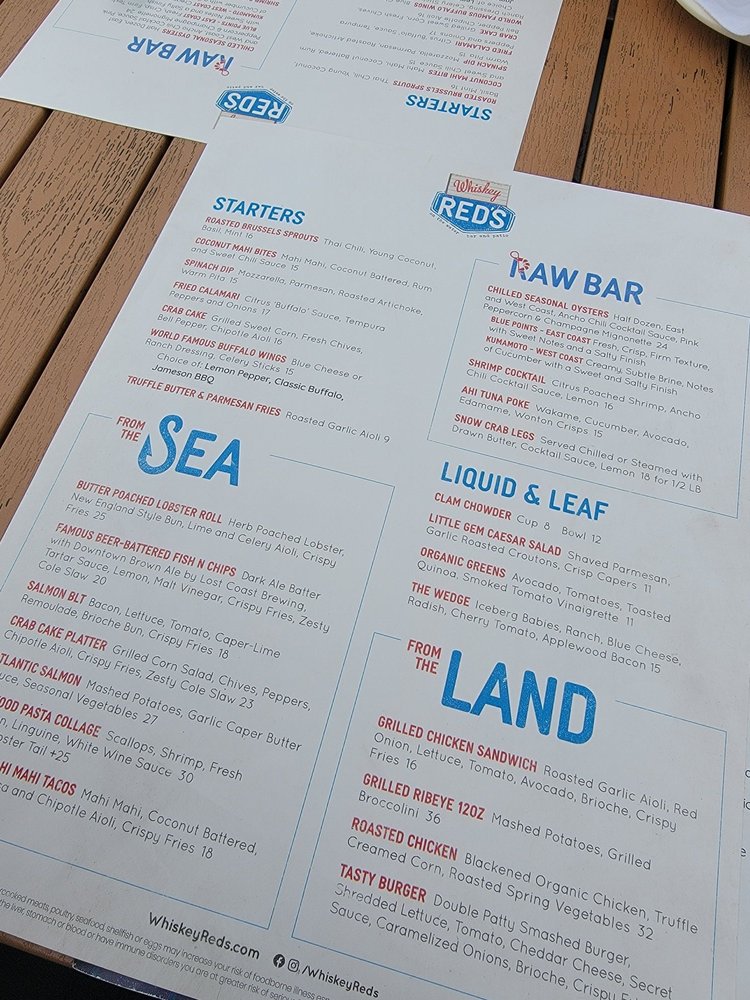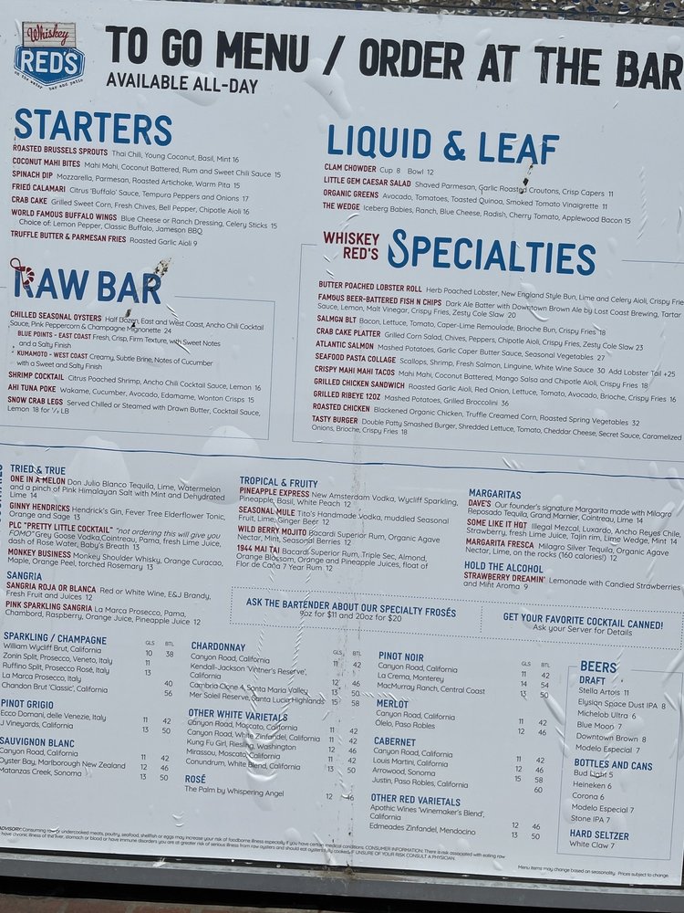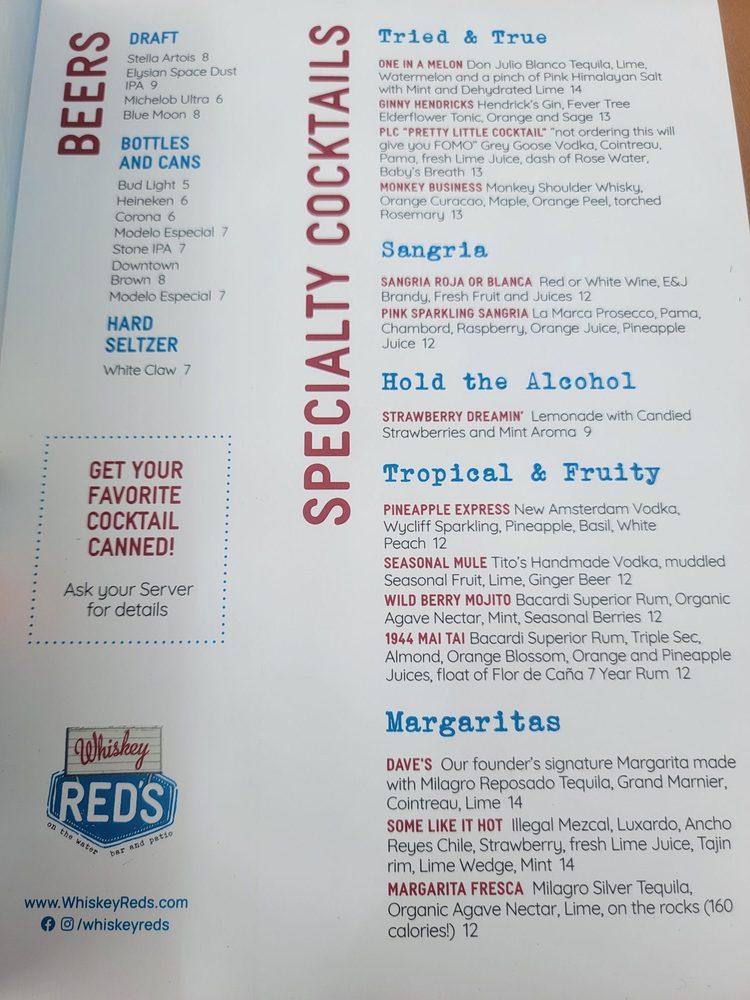 Whiskey Red's CA Menu